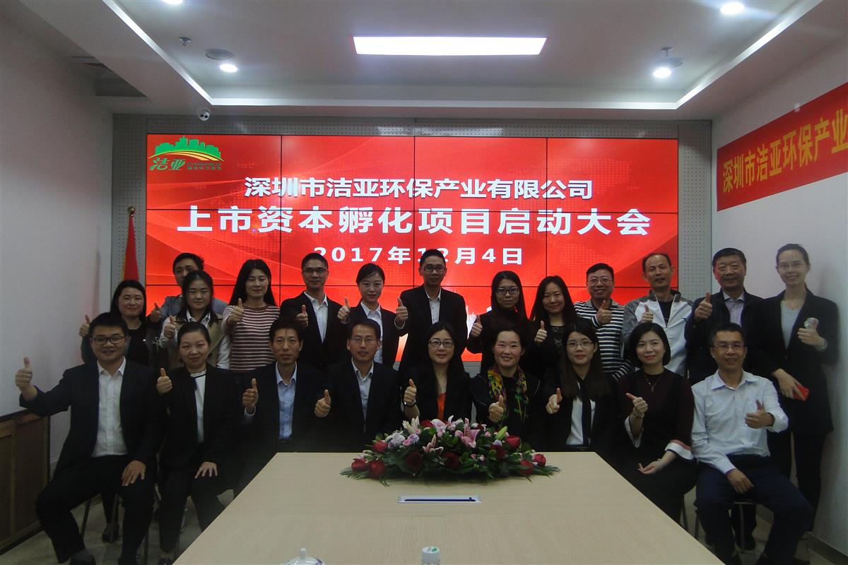 12月4日上午10时,深圳市洁亚环保产业有限公司上市资本孵化项目启动大会在总部一楼会议室召开,经过前期精心筹备,洁亚上市融资大幕开启,洁亚环保正式踏上新征程,迈向新台阶!衡佳集团董事长朱小萍、洁亚总经理朱晓芬,洁亚常务副总黄晓兰,副总经理陈实、贾三虎以及各职能部门负责人等参会,与广度资本团队进行对接,共同见证这神圣而庄严的时刻。