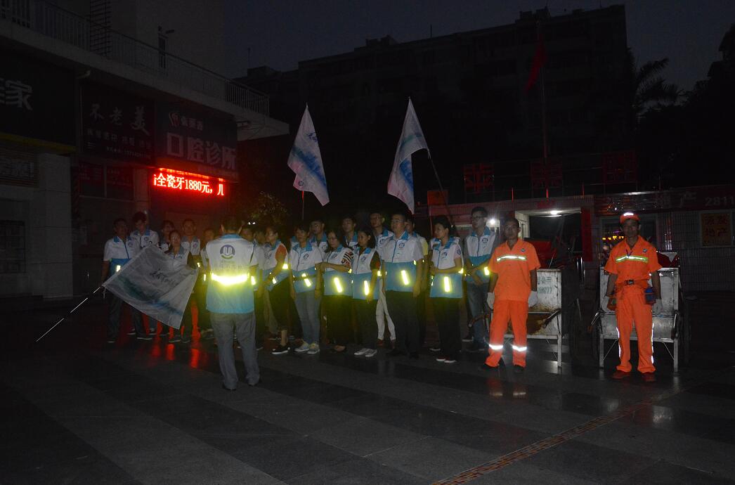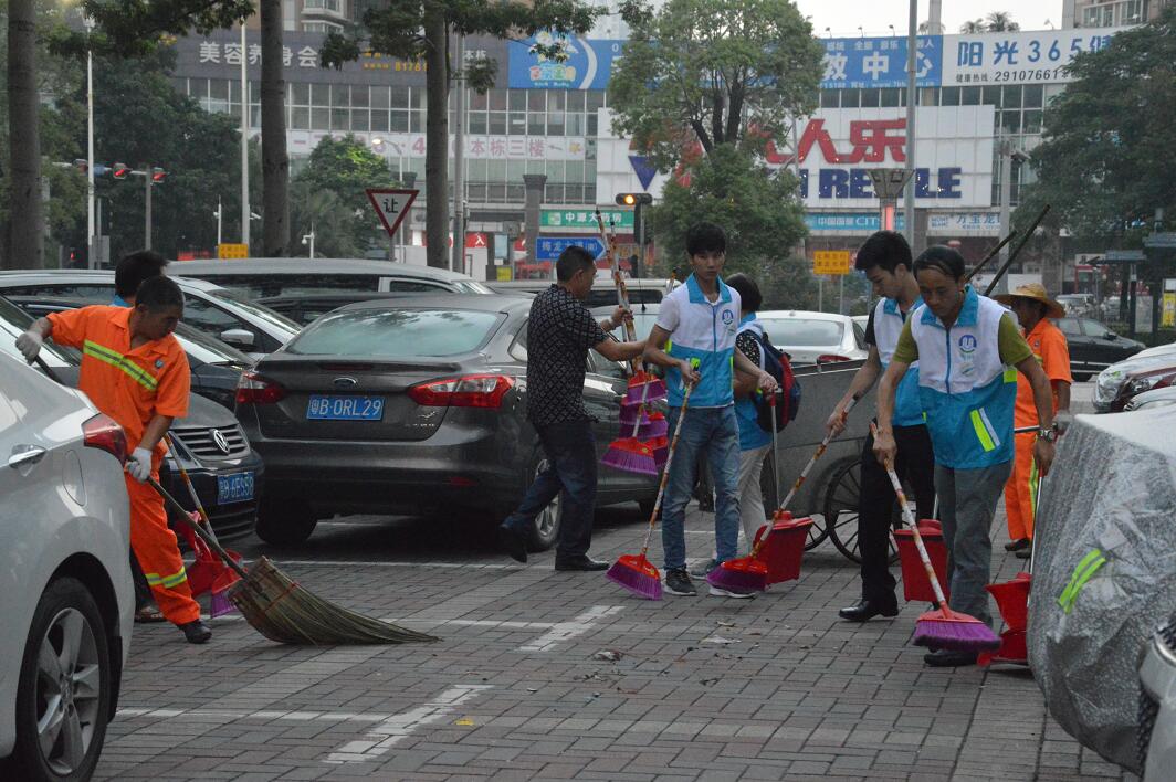 城管局机关干部、洁亚各职能部门、义工团体走上街头为环卫工人替岗