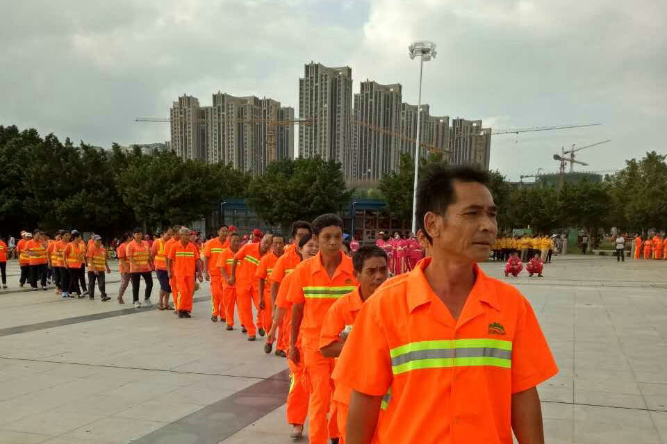 他们每天早出晚归,与垃圾、扫把打交道;他们全年无休,再糟糕的天气仍然坚守岗位、不辞辛苦;他们干着最累的活儿却拿着微薄的工资。虽被誉为“城市美容师”,却常常遭遇白眼和嘲笑。请不要随手乱扔垃圾,请将玻璃等尖锐物品包好再丢弃,让我们多留意一下这个在我们身边默默工作的群体,给他们多一些尊重,多一些关心,多一些理解,请在面对他们的时候,给他们一个微笑。