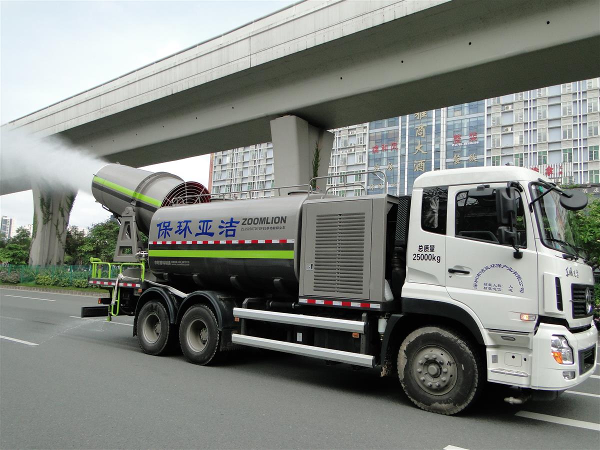 5月16日,洁亚新添置的"重武器"多功能抑尘车上路开工啦!这台将近12米长的新装备,是深圳市洁亚环保产业有限公司不久前从中联重科采购的多功能抑尘车,可以“炮轰”雾霾!轻启开关,调整好3米多长"炮"身的角度,瞬时,巨大而稠密的水雾从百余个细嘴喷射而出,将空气中的尘霾兜头"俘虏",除了天热时能有效降低路面温度和近地面气温外,它最主要的功能就是具有抗霾降尘、冲洗路面和浇灌绿化的效果。