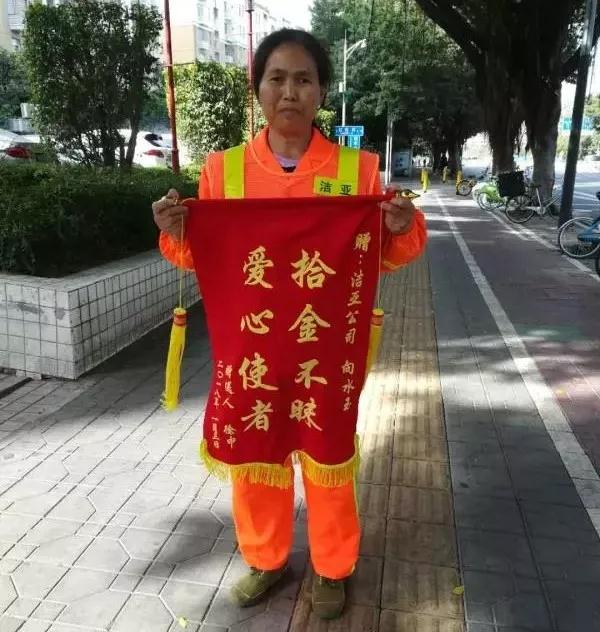 1月3日上午10时许,手捧锦旗的徐先生出现在洁亚公司福田项目红荔路段,他满怀敬意的将锦旗递向环卫女工向水玉,用无言的行动,表达着对这位拾金不昧、不计回报的大姐的感谢和敬重...