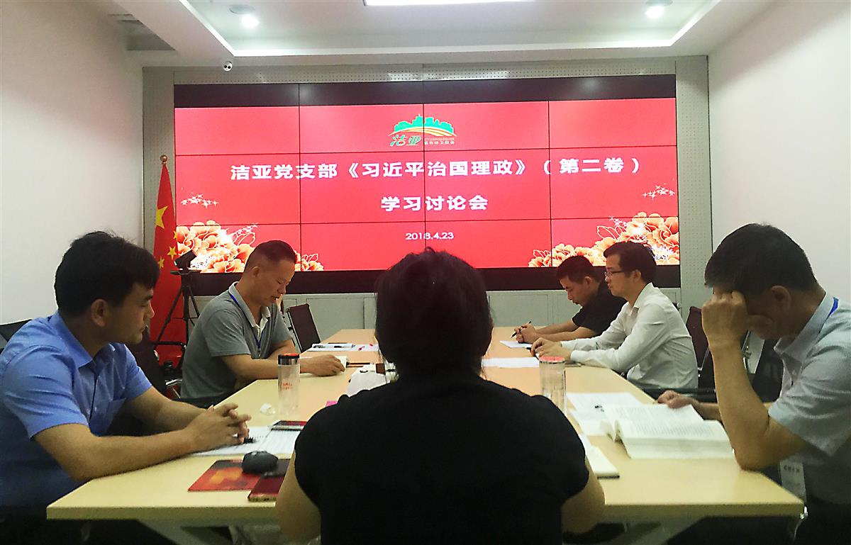 学思践悟,同频共振。洁亚党支部坚持先学一步、学深一层,结合洁亚实际搞好专题研读、深入学习。朱总要求,洁亚管理层及各项目都要集中开展或分小组学习《习近平谈治国理政》第二卷,做好笔记和记录,并以各种形式把党的思想和习近平的治国理政方针政策用在洁亚的经营管理上,切实把学习成果转化为洁亚的强大动力,同时也要用中华民族的优秀传统文化引领洁亚人的工作和生活,为洁亚的发展奠定坚实基础。