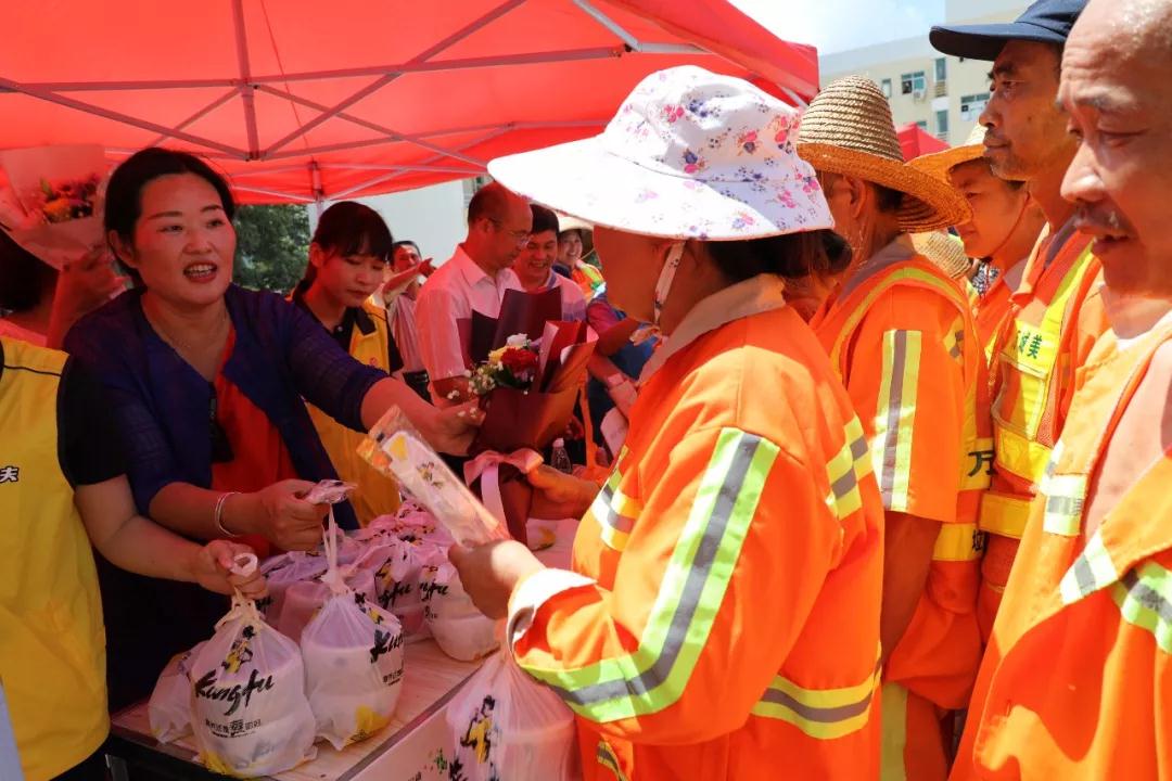 一份温情午餐,致谢坚守的平凡。5月20日上午,由市城管局指导,市关爱办、美丽深圳公益基金会、真功夫、深圳晚报联合举办的“关爱环卫工人·爱心待餐”活动在南山区环卫工人宿舍正式启动。洁亚环保总经理朱晓芬受邀担任了本届活动的“暖饭派送大使”,为到场的环卫工人们送上了鲜花、暖饭暖菜,以及5·20对环卫工人们最真挚的关怀。