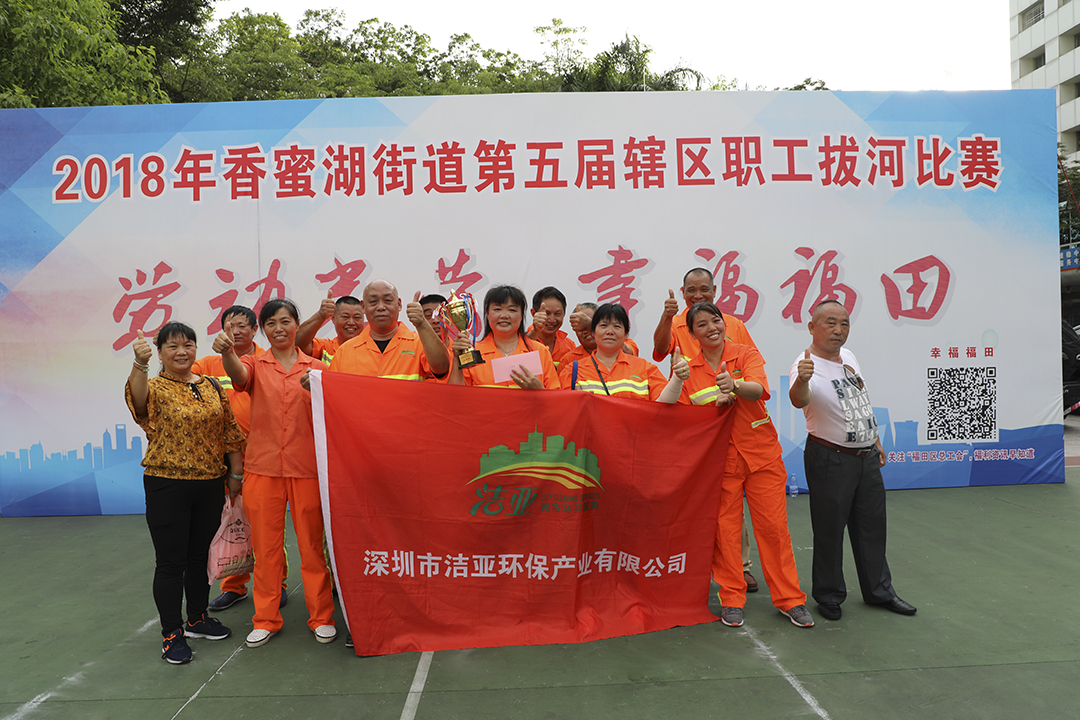 为丰富全体员工的精神文化生活,促进员工之间的交流,发扬团队精神,增强凝聚力,展现洁亚公司员工昂扬向上的精神风貌,2018年5月30日,洁亚公司参加了由香蜜湖街道办事处、香蜜湖街道总工会组织的辖区职工拔河比赛,并获得了第三名的好成绩。 |