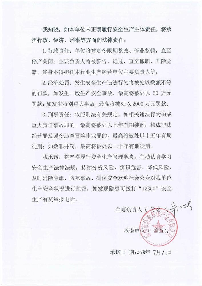 洁亚生产主体责任承诺书公示