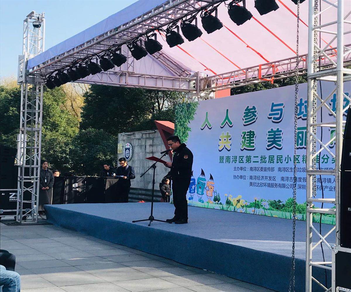南浔区综合行政执法局罗局长在活动仪式上发表重要讲话:“党的十八大首次把生态文明建设纳入中国特色社会主义事业五位一体总体布局,明确提出建设美丽中国、倡导发展循环经济的战略目标。习近平总书记在2016年12月21日召开的中央财经领导小组第十四次会议上提出,要加快建立垃圾分类投放、分类收集、分类运输、分类处理的垃圾处理系统,形成以法治为基础、政府推动、全民参与、城乡统筹、因地制宜的垃圾分类制度,努力提高垃圾分类制度覆盖范围。南浔要建设生态文明区,肩负起建设生态文明的重任。破解垃圾围城,实行垃圾分类,对不同性质的生活垃圾进行处理,真正下决心把环境污染治理好,为广大市民创造良好生产生活环境,为建设美丽南浔贡献力量”。