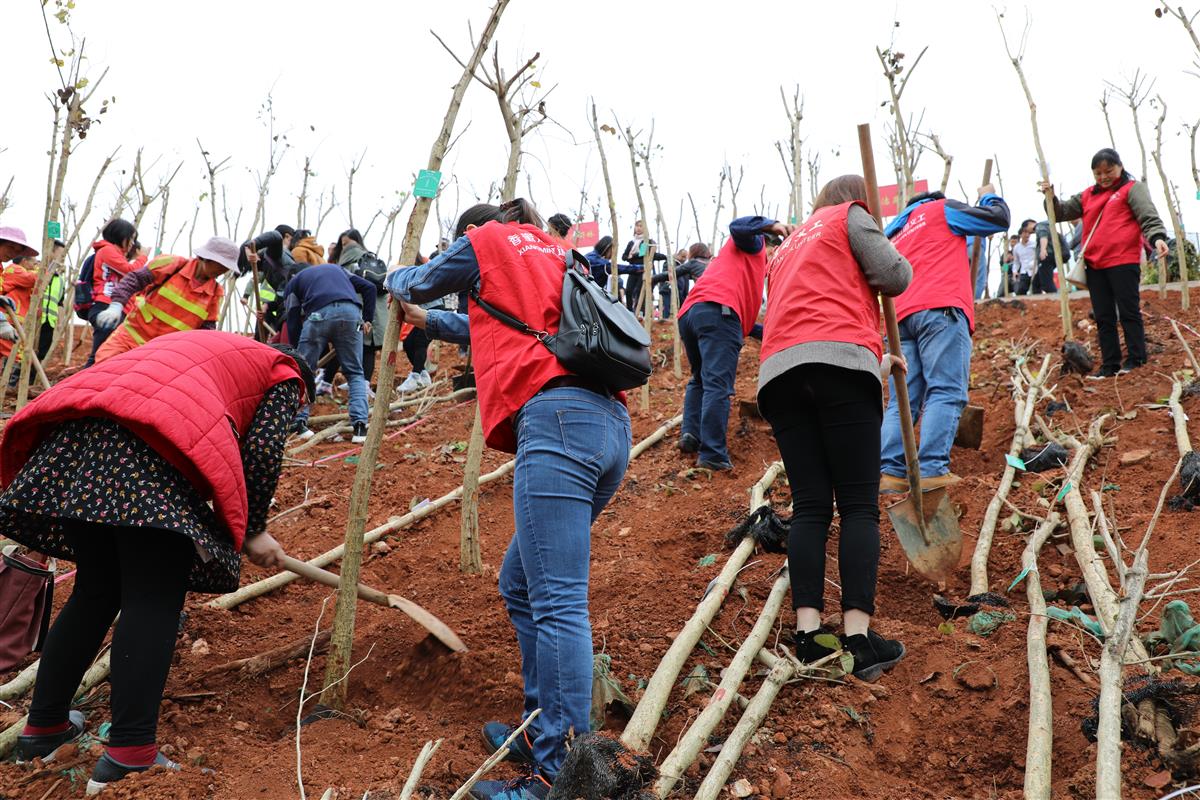 上午10点,植树活动正式开始,虽然天气有点寒冷,但洁亚义工和党员们不减热情,扛起铁铲,快速来到了公园山坡上,种下了一棵棵代表希望的小树苗。春天,正是百花盛开、万物苏醒的季节,洁亚人第一时间展开了植树活动,看,小伙伴们多卖力,挖坑的挖坑,铲土的铲土,扶树的扶树,配合得多么默契,干得多起劲!没过一会,他们就都挥汗如雨,一点也不觉得天冷了。他们身上穿着红色的义工服,脸上洋溢着开心的笑容,形成了一道亮丽的风景线。