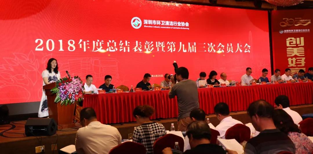 大会在庄严的会歌后正式开始,协会领导充分肯定了各会员单位在过去一年来对协会的大力支持和作出的杰出贡献,特别表彰了为美丽深圳作出贡献的众多环卫企业。深圳市环卫清洁行业协会会长刘青在大会作了协会2018年度会员大会工作报告,就协会30周年工作进行总结,并宣读了协会会员公约。